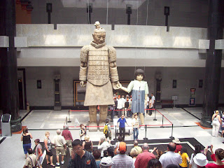 Un desayuno buffete en el restaurante del hotel para un día de largo recorrido por un circuito preparado para aprovechar hasta el último minuto en esta localidad, y que desde el primer momento podemos observar una metrópoli muy dinámica y moderna. Nos dirigimos hacia las afueras de la ciudad, por autopista tardaremos casi una hora en llegar hasta Bingma Yong, donde se encuentra el Ejército de Terracota. Declarado Patrimonio de la Humanidad por la UNESCO en 1987, la “octava maravilla del mundo“ ocupa una superficie de 56 km2, representa una única unidad arqueológica, un área que acoge la reproducción del reino humano de Qin, en el que el ejército de terracota forma parte de una gigantesca tumba construida por Qin Shihuang, primer emperador de la dinastía Qin y fundador del imperio chino, entre los años 247 y 208 a.C., esto es, hace más de 2.200 años. Impuso un rígido centralismo, e hizo quemar toda la literatura tradicional.